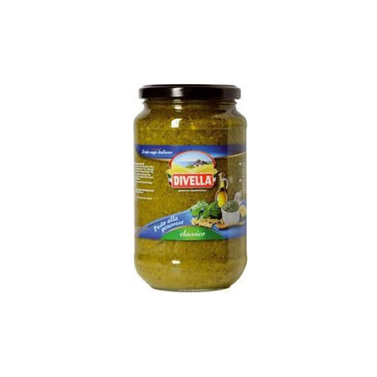 Bosiljak (38%), suncokretovo ulje, jogurt (mleko), indijski orah 4,8%, sir 4,7% (kravlje mleko, jaja), pirinčano brašno, so, šećer, Pecorino Romano sir 1% (mleko), pinjoli 1%, beli luk 1%, maslinovo ulje 1%, regulator kiselosti: mlečna kiselina, arome, biljna vlakna, antioksidant: askorbinska kiselina.