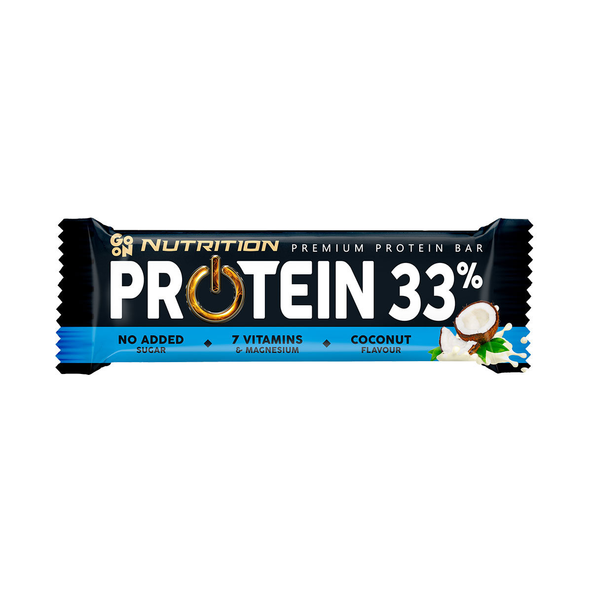“Go on nutrition premium protein bar“ – Visoko proteinska pločica sa aromom kokosa, prelivena mlečnom čokoladom, obogaćena vitaminima i magnezijumom. Sa zaslađivačima. Bez dodatog šećera.